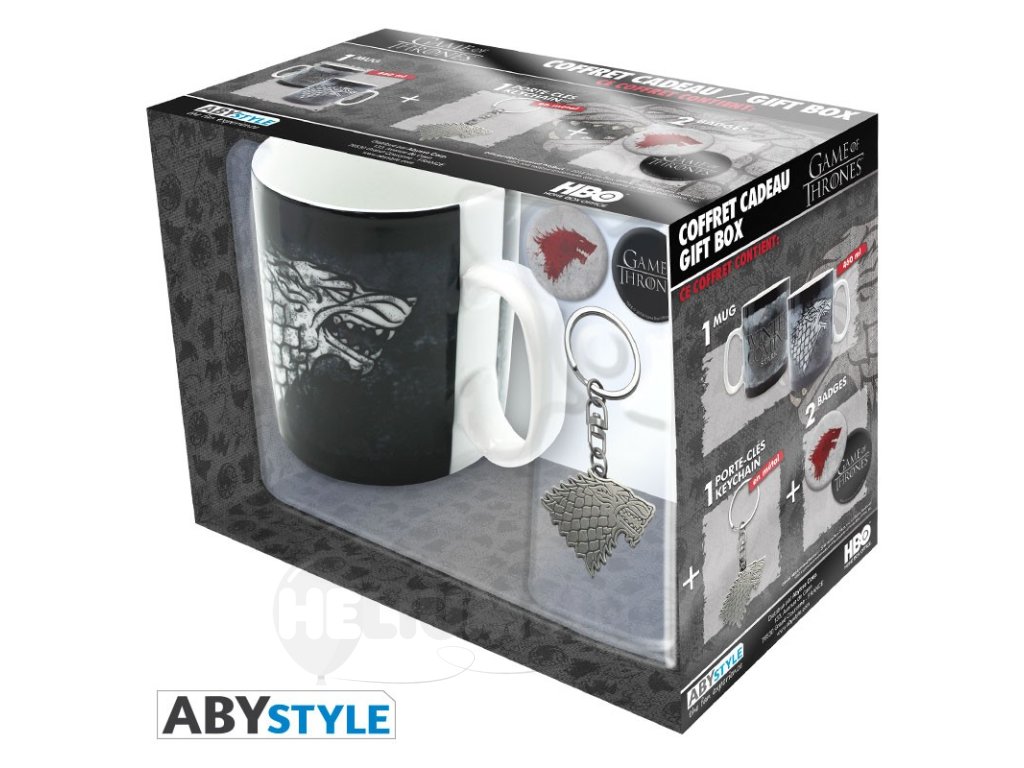 Sada hrnček, kľúčenka a odznaky Stark - Game of Thrones