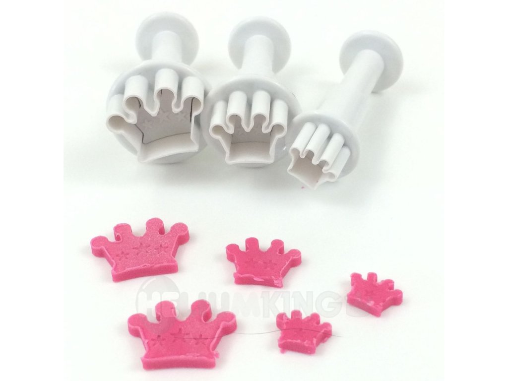 Sada piestových vypichovačov obsahuje 3 veľkosti koruny. Vhodné na torty s dievčenskou tématikou. Piestové vypichovače vytvoria originálne fondánové ozdoby, ktoré dotvoria povrch torty alebo dezertov. Vďaka piestu je manipulácia jednoduchá.