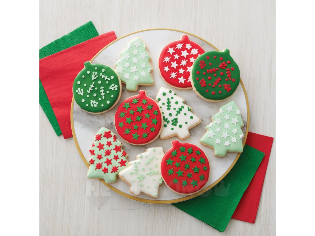 Sada vykrajovačiek a stencilu. Vykrojené výrobky budú perfektne zdobiť originálne vianočné dezerty. Využijete ich pri tvorbe domáceho lineckého pečiva, perníkov a sušienok. Vykrajovačka je vhodná aj na vykrajovanie z fondánu alebo marcipánu. Po vykrojení a upečení môžete následne hotové pečivo ozdobovať pomocou stencilu.