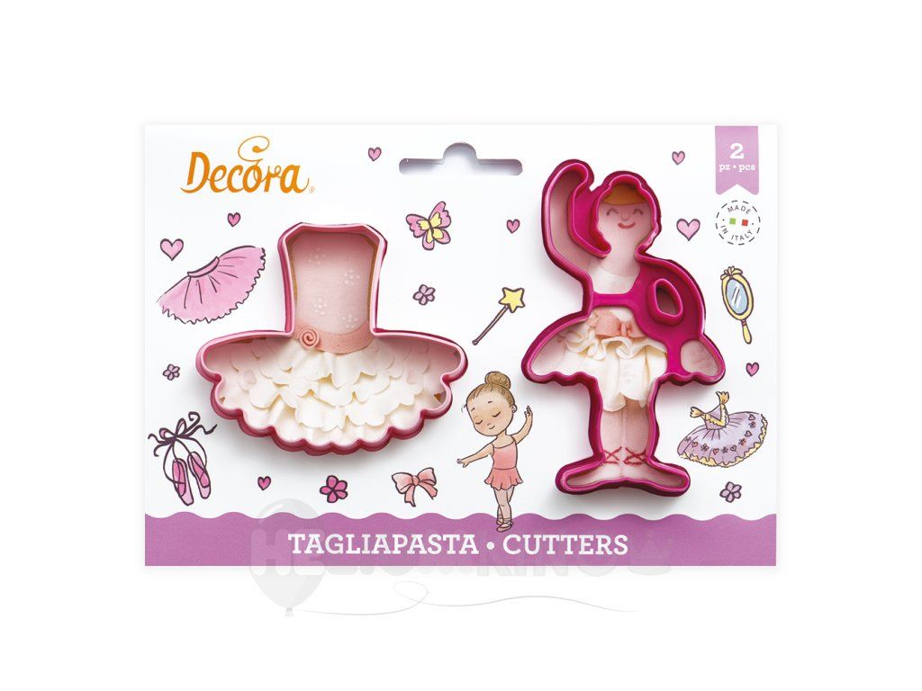 Netradičná sada vykrajovačiek v tvare baleríny a tutušiat sú vyrobené z plastu. Výrobky urobené pomocou vykrajovačky budú perfektne zdobiť dámsku alebo dievčenskú tortu. Je vhodná na vykrajovanie vzorov z marcipánu alebo fondánu.