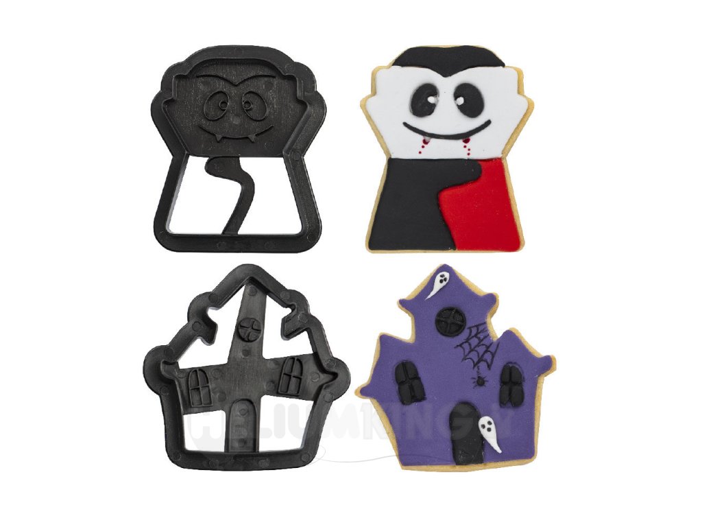 Sada vykrajovačiek obsahuje upíra a kaštieľa. Vykrojené výrobky budú perfektne zdobiť hallowenske párty a oslavy. Využijete ju pri tvorbe domáceho lineckého pečiva, perníkov, medovníkov a sušienok. Vykrajovačka je vhodná aj na vykrajovanie z fondánu alebo marcipánu.