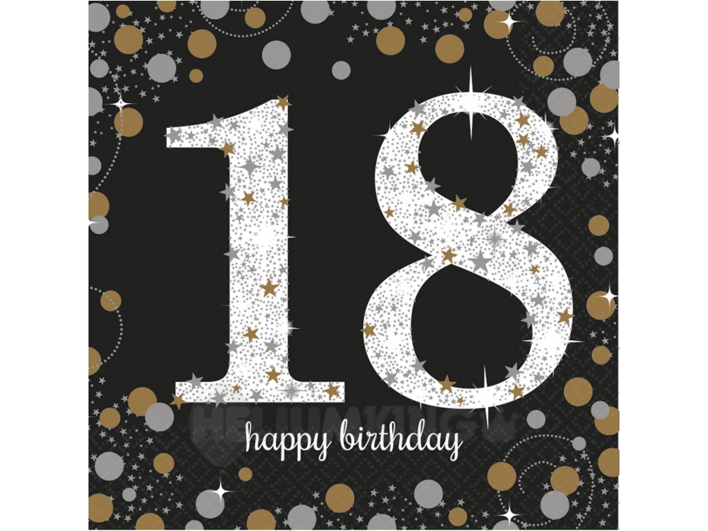 Servítky 18.narodeniny trblietavá zlatá 33 x 33 cm