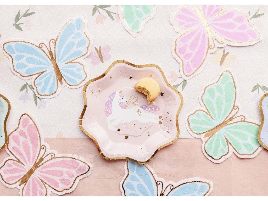 Elegantné servítky s motívom motýľov sú krásnym doplnkom na narodeninovú oslavu, záhradnú párty, krstiny či jarné posedenie. Jemný dizajn dodá stolovaniu svieži a romantický nádych. Servítky sú ideálne na dezerty, tortu alebo drobné občerstvenie. Okrem praktickej funkcie zároveň poslúžia aj ako štýlová dekorácia slávnostného stola.