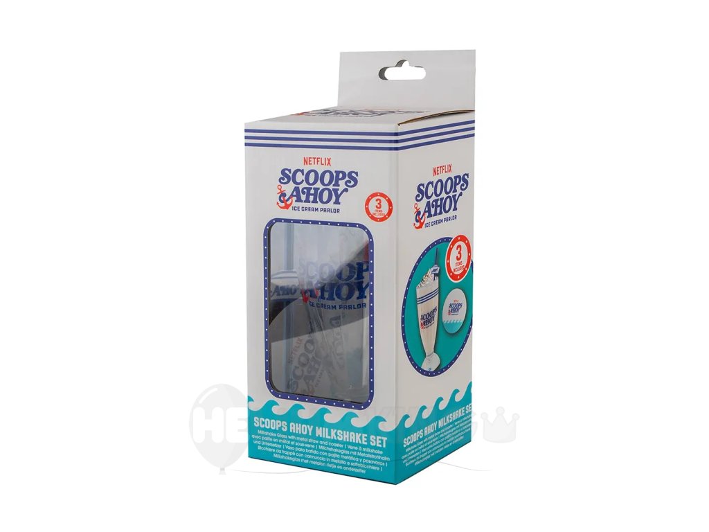 Vytvorte si doma autentický mliečny kokteil ako z legendárnej americkej seriálovej zmrzlinárne! Tento set Stranger Things - Scoops Ahoy obsahuje všetko, čo potrebujete na prípravu lahodného, krémového kokteilu presne podľa receptu obľúbených hrdinov.