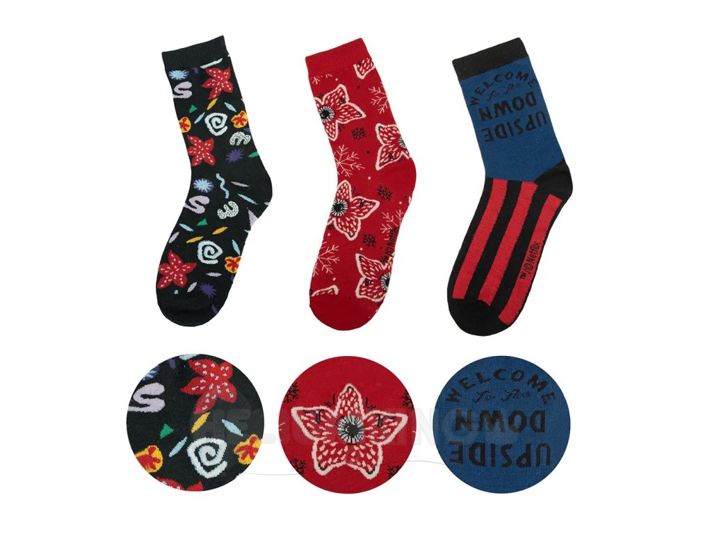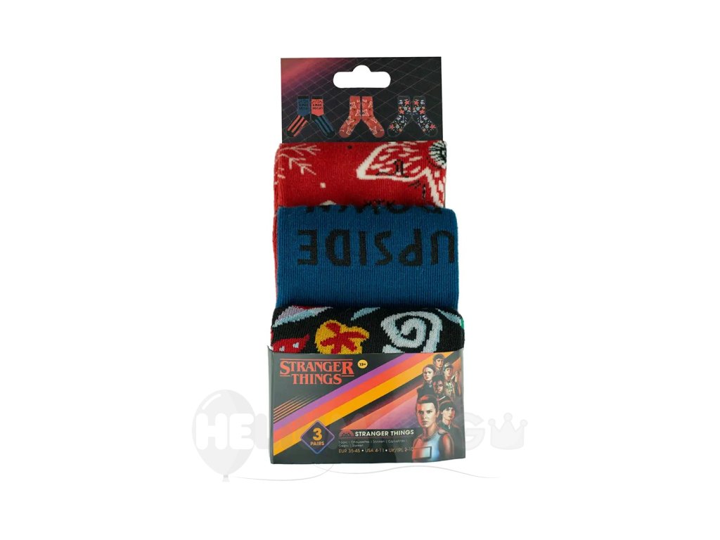 Vstúp do sveta Hawkinsu priamo cez svoje ponožky! S týmto setom ponožiek Stranger Things bude každý tvoj krok trochu záhadný, trochu retro a hlavne mega štýlový. Ideálny pre fanúšikov, ktorí chcú ukázať, že Upside Down nie je len miesto, ale aj životný štýl! Obleč si ich, vybehni za dobrodružstvom (alebo aspoň do obývačky) a nechaj svoje nohy rozprávať príbeh plný záhad, priateľstva a vaflí. Pozor, v týchto ponožkách je možné stretnúť Demogorgona… alebo aspoň získať obdivné pohľady!
