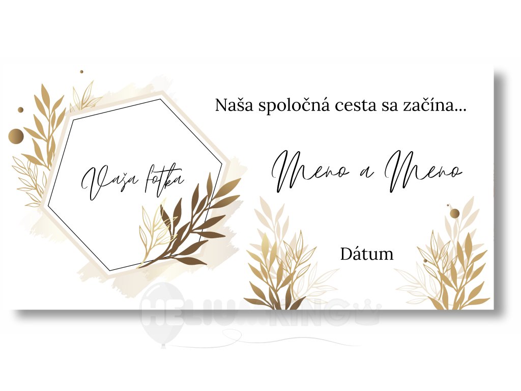 Svadobným bannerom máte možnosť pridať osobný dotyk každej svadby. Vyberte si vlastnú fotografiu páru, pridajte mená, dátum a svadobná hostina môže začať ! Týmto spôsobom vytvoríte jedinečný a nezabudnuteľný moment, ktorému sa poteší každý pár.