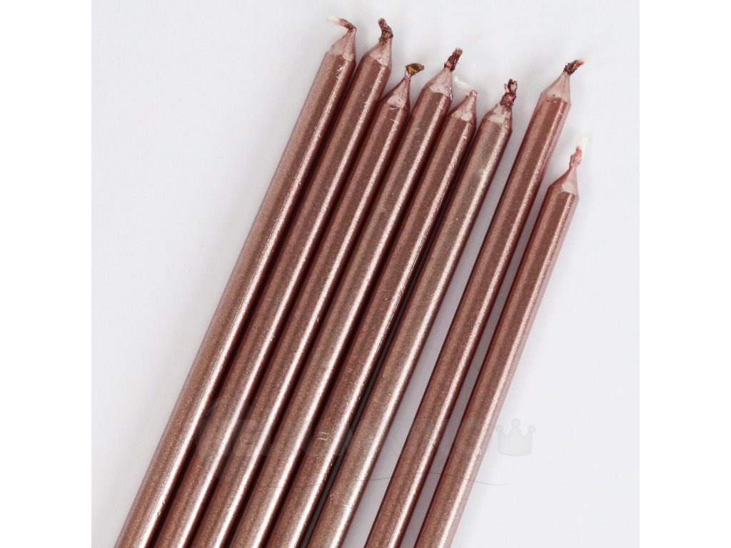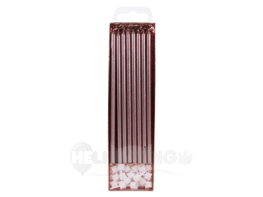 Sviečky s podstavcami - ružovozlaté 18 cm 16 ks