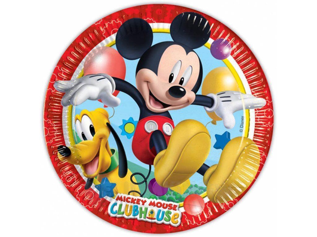 Chcete usporiadať detskú narodeninovú oslavu? Tak to Vám nesmú chýbať taniere s motívom obľúbenej rozprávky Mickey Mouse. Mickey taniere vyčarujú úsmev na tvári nie len oslávencovi, ale aj hosťom na party. V detskej party téme Mickey Mouse nájdete aj ďalšie skvelé párty doplnky, ktoré Vám pomôžu pri výzdobe detskej párty.