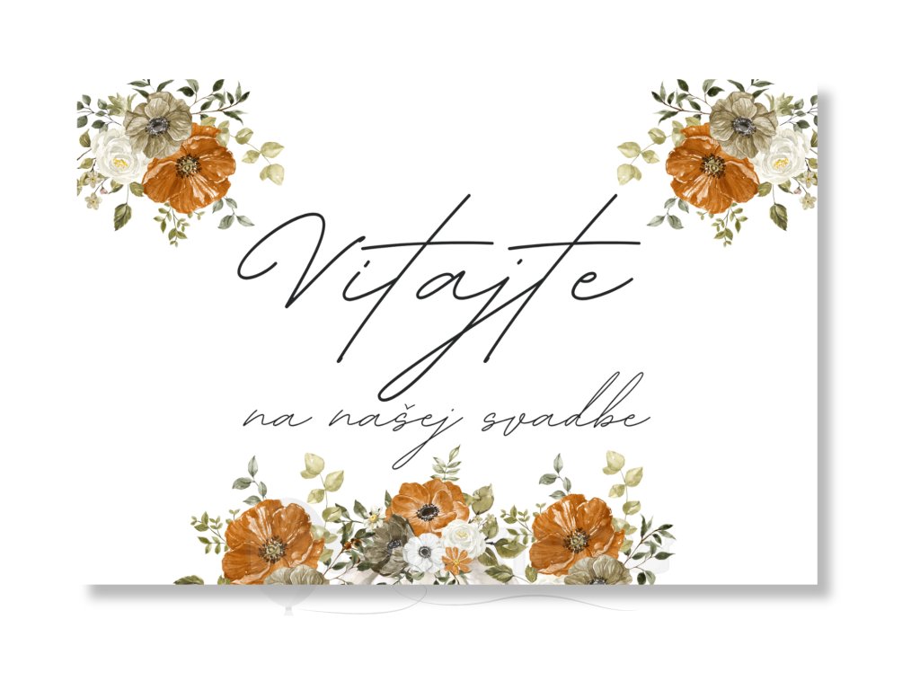 Pripravte krásny set a tento uvítací plagát skombinujte s kolekciou Autumn Time v rovnakom dizajne a zabezpečte, aby každý detail Vašej svadobnej oslavy bol dokonale zladený.