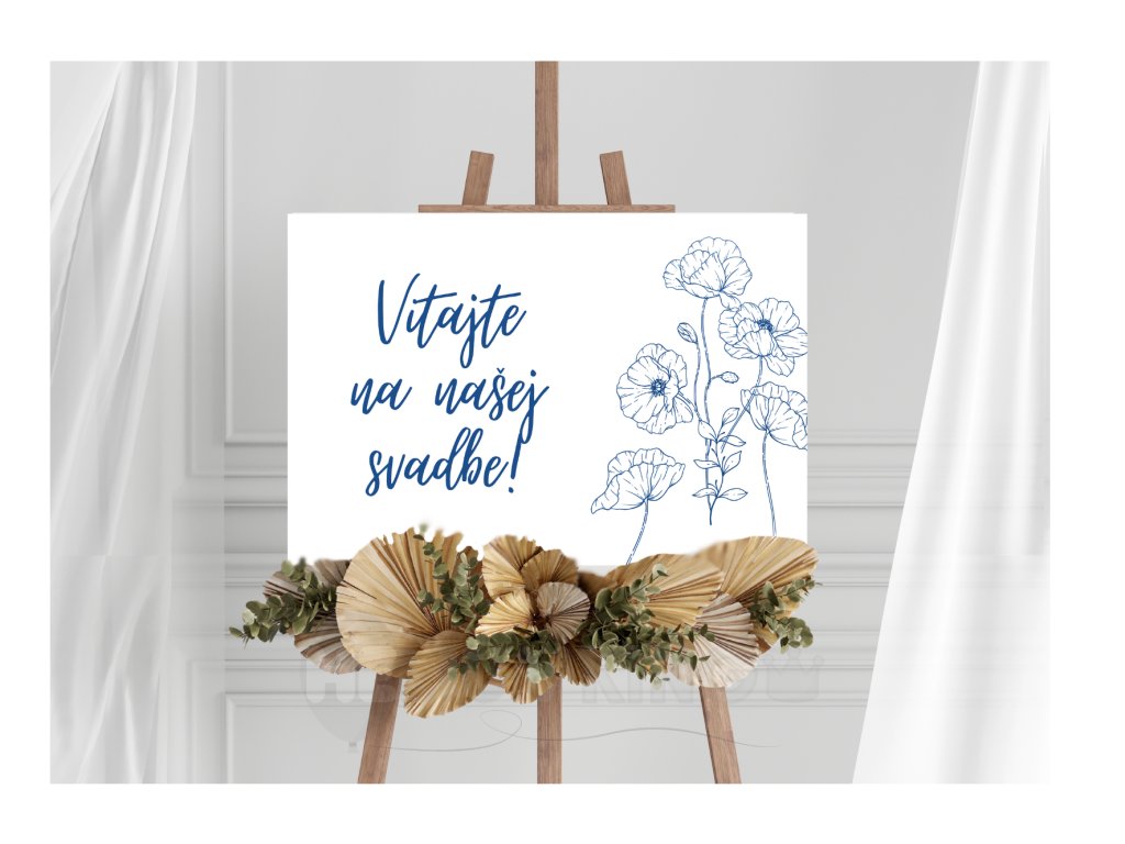 Pripravte krásny set a tento uvítací plagát skombinujte s kolekciou Modrotlač v rovnakom dizajne a zabezpečte, aby každý detail Vašej svadobnej oslavy bol dokonale zladený.