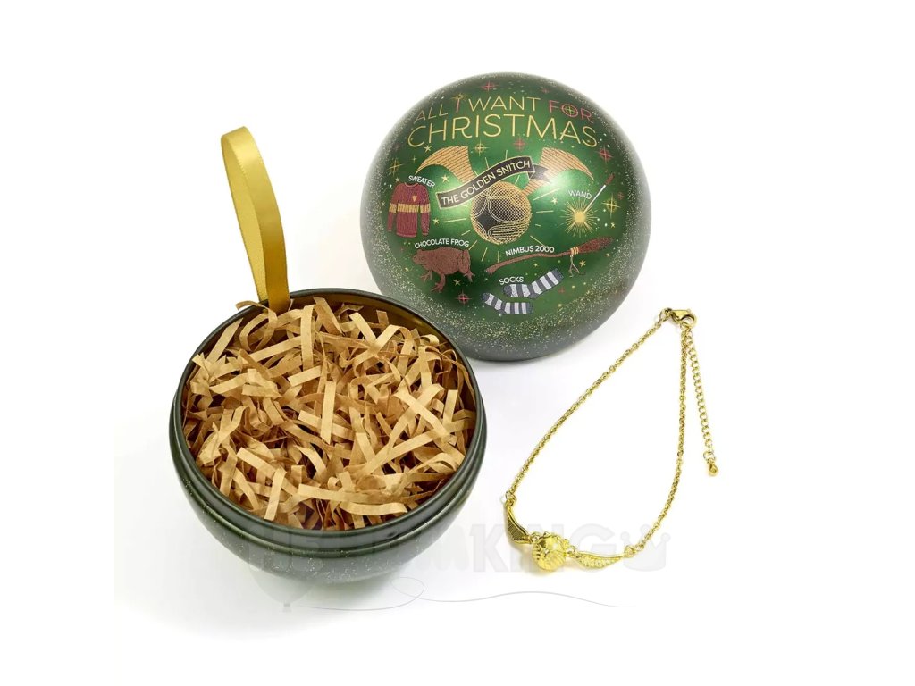 Vianočná guľa Harry Potter s náramkom Zlatá strela je ideálnym darčekom pre fanúšikov čarodejníckeho sveta. Súčasťou balenia je náramok, ktorý ponúka fanúšikom možnosť nosiť kúsok svojej obľúbenej série. Tento set je perfektný na ozdobenie vianočného stromčeka alebo ako originálny darček pre všetkých milovníkov Harryho Pottera.