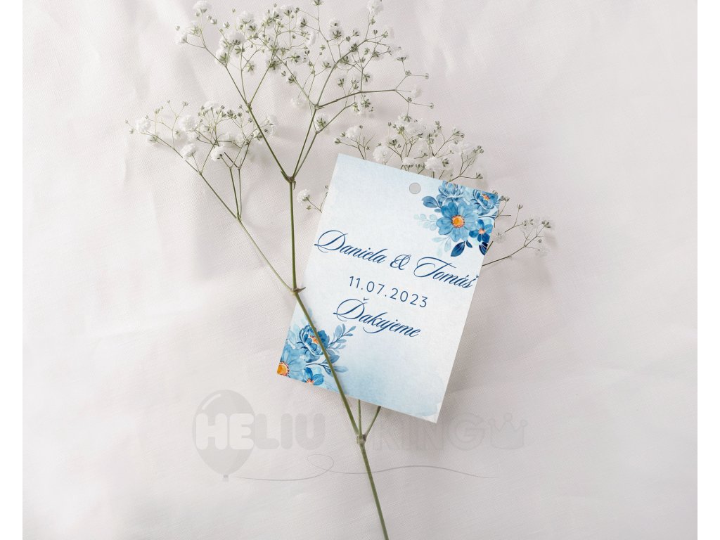 Pripravte krásny set a túto svadobnú visačku skombinujte s edíciou Modré kvetiny v rovnakom dizajne a zabezpečte, aby každý detail Vašej svadobnej oslavy bol dokonale zladený.