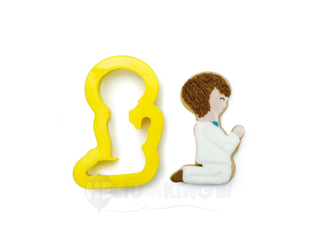Netradičná vykrajovačka v tvare chlapca je vyrobená z plastu. Výrobky urobené pomocou vykrajovačky budú perfektne zdobiť tortu, ktorú pripravujete na prvé sväté prijímanie alebo na krst dieťaťa. Je vhodná na vykrajovanie vzorov z marcipánu alebo fondánu.