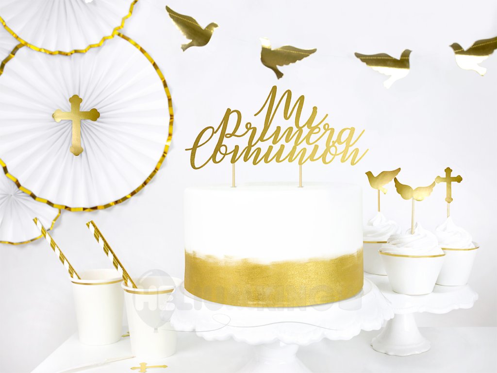 Ozdobte tortu na Prvé sväté prijímanie štýlovými toppermi zo zrkadlového zlatého papiera. Tento set DIY obsahuje 6 dekorácií, 6 samolepiek a 6 paličiek, ktoré si jednoducho zložíte podľa potreby. Po zložení dosahujú výšku približne 26,5 až 31,5 cm, takže vytvoria pôsobivú a elegantnú dekoráciu. Zlatý lesk a rôzne motívy dodajú tortám a slávnostnému stolu sviatočný a nezabudnuteľný vzhľad, ktorý poteší oslávenca aj hostí. Ideálne pre kreatívnych rodičov, ktorí chcú tortu pripraviť presne podľa svojich predstáv.