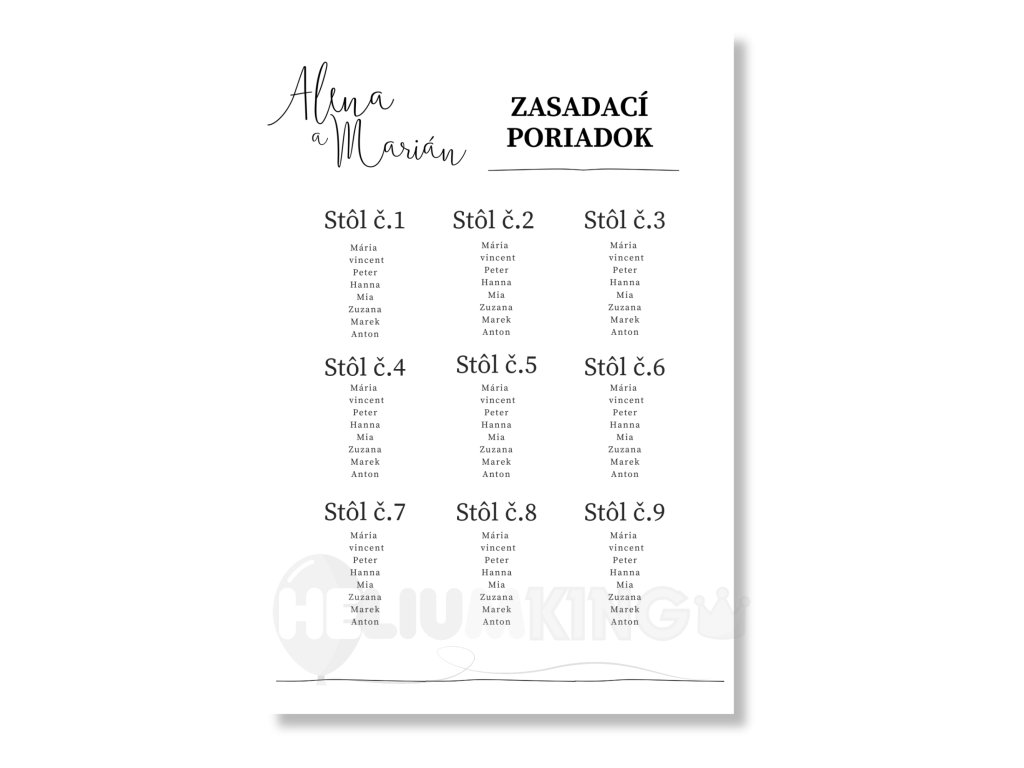 Pripravte krásny set a tento zasadací poriadok skombinujte s svadobným oznámením, etiketou na víno, menu alebo nálepkou v rovnakom dizajne a zabezpečte, aby každý detail Vašej svadobnej oslavy bol dokonale zladený.